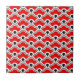 Ceramic tile in a Chinese scallop or wave pattern, traditional in textile and enamel work, in deep Chinese red, silver grey / grey, black and white