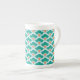 Deco Chinese Scallops, Teal, Aqua and Coral Bone China Mug