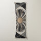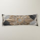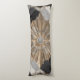 Introducing the exquisite "Deco Circle" body cushions, expertly crafted from a luxurious blend of brushed polyester and Grade A cotton. These elegant throw pillows showcase rich brown and gold tones, featuring a decorative design inspired by the art deco style, created by ELGN Deco Designers. The artful geometric graphics evoke the feel of leather cutouts, seamlessly adding a touch of sophistication to any décor.
