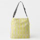 An Art Deco, Egyptian inspired geometric motif in mustard gold / dark yellow on a white background print bag
