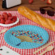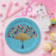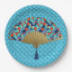 Deco Fan - Flowers in Cobalt, Turquoise and Red Paper Plate