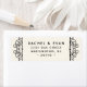 Elegant art deco style return address labels feature a warm ivory background with crisp black lettering and decorative accents. Personalise with your return address in deco typography flanked by ornate vintage style flourish illustrations. Coordinates with our Deco Flourish wedding invitation collection.