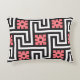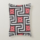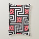 Art Deco Greek key or labyrinth pattern accent pillow in classic black and white, accented with coral pink