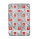 Art Deco Greek key or labyrinth pattern bath mat in dark graphite grey / grey and white, accented with deep Chinese red