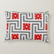 Art Deco Greek key or labyrinth pattern accent pillow in dark graphite grey / grey and white, accented with deep Chinese red