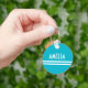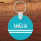 Deco Stripes Name Monogram White Bright Blue Key Ring