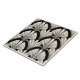 This ceramic tile features a black and white deco style pattern with white wings. The design showcases Art Deco futurism with elaborate facades and detailed foliage. The colour scheme of dark white, black, and beige adds a sophisticated touch. The pattern is seamless and repeatable, making it a versatile choice for various spaces.