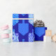 This bright, contemporary Hanukkah design features simple shapes and intricate patterns in a classic blue and white palette