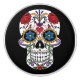 Painted human skulls with blue flower eyes and heart to customise, personalise by changing to your name