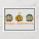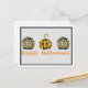 Great Halloween postcard features watercolor illustration of fancy decorated pumpkins on black background with orange customisable text.
