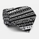 A black and white hand drawn repeating abstract design with horizontal decorative stripes or strata, each with different patterns.