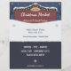 A flyer advertisement for a local Christmas market featuring at the top, a wooden sign, covered in snow and decorated with bubbles and a red bow, all on a dark blue background. In the middle and at the bottom, there are places for customisable information and some snowflakes. You can also use it as party invitation or dinner!