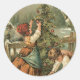 Beautiful vintage illustration of two children outside decorating a small Christmas tree.