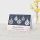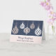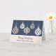 Merry Christmas for friend and his family card with a modern design with rose gold ornaments and blue background.