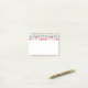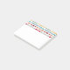 This Post-It notepad has a mid-century modern design of circles and ovals strung together in retro colours strung together on a field of white.