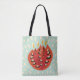 Abstract tulip all over printed bag with a decorative illustration of a red tulip over light blue background. The lovely flower’s bright red petals also resemble a flame. This beautiful floral illustration brings spring mood with its lively and cheerful colours.