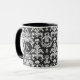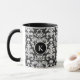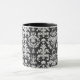 A timeless black and white damask pattern, featuring intricate floral motifs intertwined with elegant curves and flourishes, exuding sophistication and classic elegance.