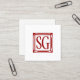A square business card template with initials placed inside a 1.25in square with a decorative frame. In this version the initials are in the Integrity bold font. Name and profession/job title along with telephone, email and website address in black on the reverse side on a white background, using variations of the Matt Antique font.