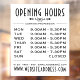 Decorative Business Opening Hours and Information Window Cling by the Business Card Store.