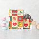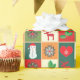 The wrapping paper for Christmas celebration in designing with the Christmas ornaments such as Christmas tree, Christmas bell, Christmas wreath and Christmas decor leaves in retro prints with a presentation of green colour.