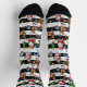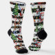Decorative Christmas Stripes themed Pattern Design featuring snowflakes, reindeer, Xmas candy cane, Christmas trees, elf, santa Claus, Snowman stars and Christmas balls seamless repeat pattern Design SOCKS