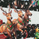 Decorative Christmas Stripes themed Pattern Design featuring snowflakes, reindeer, Xmas candy cane, Christmas trees, elf, santa Claus, Snowman stars and Christmas balls seamless repeat pattern Design WALL WALLPAPER