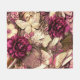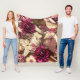 This beautiful blanket features maroon roses, decorative butterflies and floral elements in shades of tan, cream and pink in a vintage style.