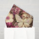 This is a beautiful tissue paper featuring maroon roses and decorative butterflies and floral elements in shades of tan, cream and pink. This vintage collage style tissue paper would be great for a decoupage project or as a gift bag filler for a special occasion.