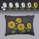 Pillow inspired by three decorative sunflower drawings.