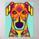 This colourful geometric illustration of a dog is full of life and art. It captures the beauty with artfully rendered details. This animal illustration is perfect for anyone looking for a unique, artistic, and beautiful representation of wild animals in their home. With its vibrant colours, this is the perfect addition to any animal lover's decor.