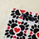 Cute cartoon style dog paw prints and red hearts design.