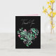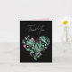 Chic thank you card done in black, with a decorative green, pink and white floral heart. Personalise all the text fields to suit your needs.