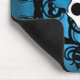 Super cute hand drawn Gothic skull mouse pad with a thorny swirly vine motif in black on a background of blue stripes. A Pretty desk decoration.