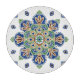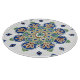 This 12" Round glass cutting board has an intricate multicolored Medallion. The colours are blue, green and tan on a white background. Look for other coordinating products in the Collection. This design comes from tiles by Oregon Tile maker Fay Jones Day.