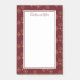 Sticky notes with a repeating pattern of fancy golden snowflakes with elegant crystalline shapes. A dark red background.