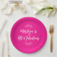 Magenta hot pink and white decorative, personalised 40 & Fabulous typography round paper plates.