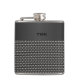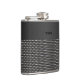 Stylish flask with graphics of a metallic woven metal look, on the bottom, with a black brushed metal look, on the top. A black three letter monogram is ready to personalise. Great gift idea for any guy and especially great as a wedding party gift for groomsmen.