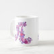 Decorative hand drawn capital Monogram A mug. Pretty hand drawn doodled design featuring hearts and flowers in purple and pink shades. © Unique typography art and design by Sarah Trett. www.sarahtrett.com for www.mylittleeden.com on zazzle