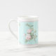 Decorative mug china shabby chic roses, pink and mint.