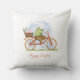 Decorative pillow "Happy Easter" with the image of a bunny on a bicycle.