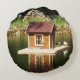 Decorative pond with bird house and alphine slide round cushion