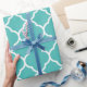The wrapping paper for celebration in designing with the Quatrefoil Pattern Teal Green design.