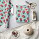 Decorative Red Flowers Mint Blue Polka Dots Wrapping Paper
