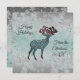 A decorative festive reindeer along with a snowflake and glittery stars backdrop creating a magical winter wonderland vibe where you can custom the card at the left and right corner making it uniquely your own.