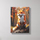Renard d'Autumn is a fascinating canvas that captures the serenity of a fox in the heart of the fall season. The portrait depicts a soothing fox, surrounded by leaves with warm golden shades, which gently fall into the fresh air. Its quiet look and silky coat blend harmoniously with the rich and deep colors of autumn, evoking a feeling of calm and fullness. This work invites you to a silent contemplation, where the simple beauty of nature blends with the discreet elegance of the animal.