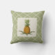 Pillow with pineapple and bamboo lattice design on green background. See all the coordinating pillow designs at Sandy Feet Studios.