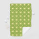 Green towel set with a geometric pattern of yellow stars and diamonds. Top image shows towels hanging; bottom shows washcloth with corner folded.