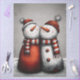 Two snowmen stand side by side in a snowy embrace, dressed in red striped scarves and pom-pom hats. One wears red, the other white with red buttons—together they radiate warmth, whimsy, and seasonal joy. Perfect for decoupage, mixed media, or furniture art that celebrates friendship and festive charm.