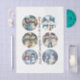 A joyful winter collage sheet featuring six 3-inch circular illustrations of snowmen in festive, snowy settings. Each snowman is adorned with cosy hats, scarves, and gloves, often joined by children or fellow snowmen. The backgrounds include charming houses, decorated trees, and softly falling snow—capturing the warmth and magic of the holiday season. Perfectly sized for 3-inch molds, this 10x14 sheet is ideal for ornaments, tags, mixed media crafts, or handmade winter gifts. Each design brings storytelling, nostalgia, and seasonal sparkle to your creative projects.