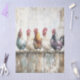 Decoupage 5 Chickens on a Fence 18x24 Canvas Tissue Paper